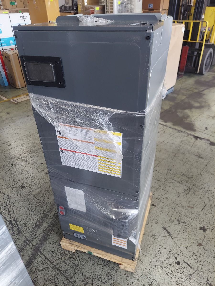 The Goodman AMST24BU1400 air handler is rated for an output of 2 tons. In many cases, the tonnage of the air handler will be larger than the condenser that it is naturally paired with. This is intentional, and is to maintain the overall efficiency of the unit. While the unit does require a condenser to function as part of a heat pump or air conditioner, heat strips may be installed in the air handler to provide straight electric heating, which can be used as an electric furnace on its own or as a backup heat option for a heat pump setup.