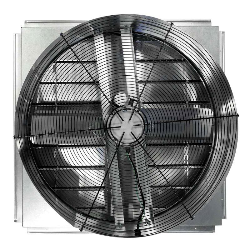 The Maxx Air 36 In. Exhaust Fan quickly removes odors, dust, and humidity from industrial and agricultural spaces. With a sturdy steel housing, aluminum shutter louvers, and safety grille, it's reliable and safe. Fully assembled for easy installation, it pairs with an adjustable thermostat with firestat (XXFIRESTAT) for added control and safety.