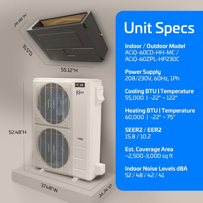 60,000 BTU ACiQ Platinum Single Zone Concealed Duct Mini Split Air Handler - R454B | 230V | |