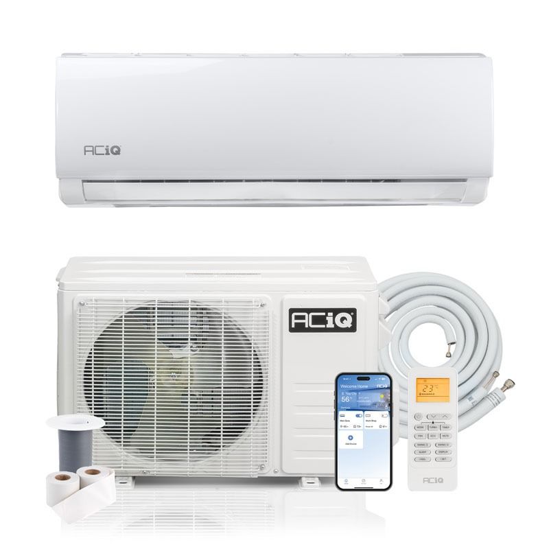 With a 20 SEER2 efficiency rating, built-in WiFi control, and quiet operation, this system keeps you comfortable all year long—without driving up your energy bill or disrupting your day. It’s designed for easy installation by a licensed HVAC professional and comes ready with everything you need for a clean, efficient setup.ACiQ Essentials mini splits arrive with the essential components you’ll need for a complete, professional installation! Included with each system are 16ft line sets, mounting hardware, and other accessories—so you won’t have to source extra parts. While you’ll still need a licensed HVAC technician to handle setup and refrigerant connections, this all-in-one package keeps things simple and hassle-free, ensuring your new system is up and running smoothly in no time.