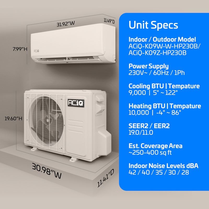 The ACiQ Essentials 9,000 BTU Single Zone Wall Mounted Mini Split System is a smart, reliable solution for cooling and heating individual spaces! Perfect for bedrooms, offices, or any room up to 400 square feet and backed by the same trusted manufacturing partners behind major HVAC brands, ACiQ delivers high-end performance without the high-end price tag.