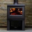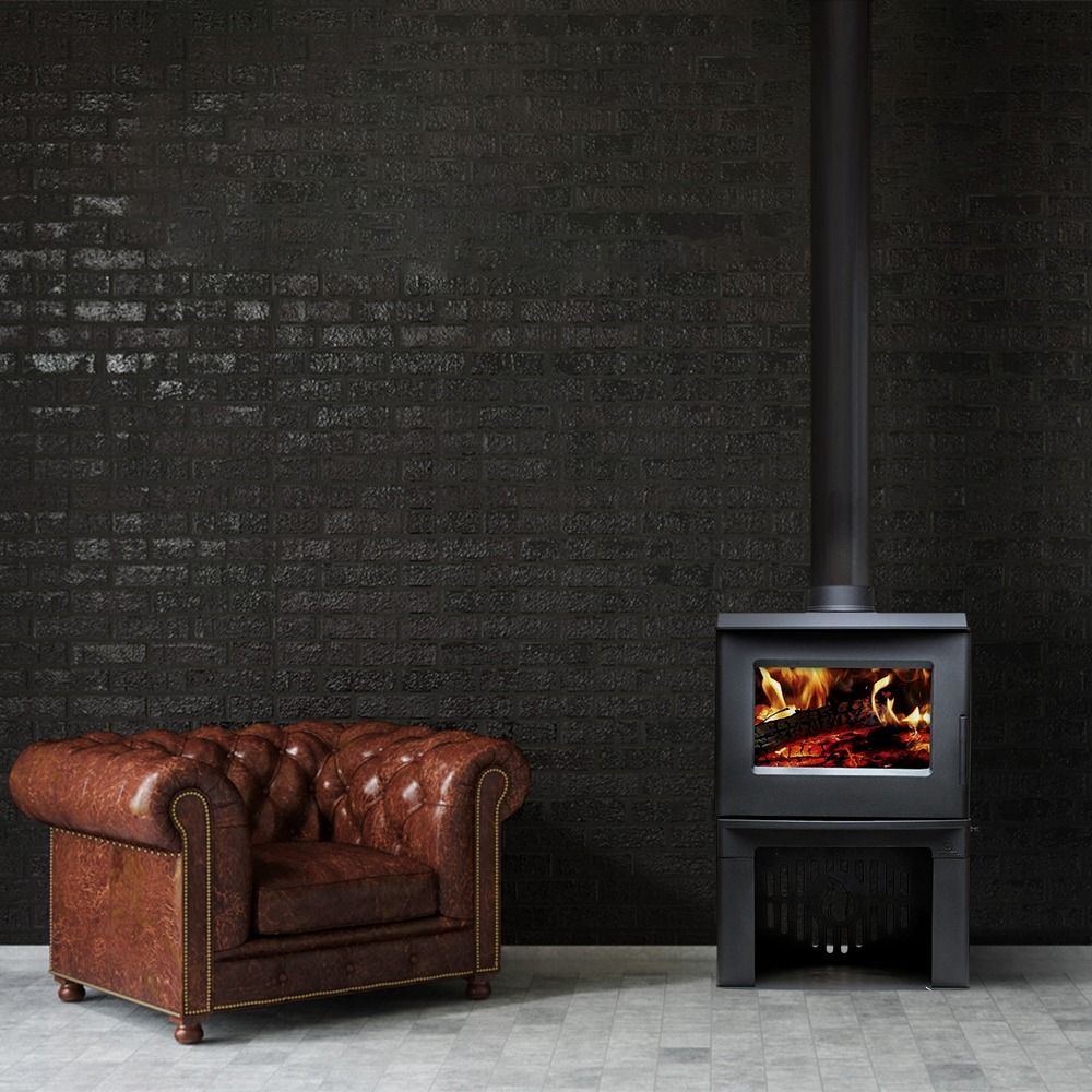 The Breckwell SW1.2 is a beautiful, airtight wood burning stove in a black finish. The SW1.2 sits on a pedestal base with a unique Breckwell logo on the back panel. The sturdy, tight-locking door has a large rectangular window that offers a view of the burning fire to enhance your hearth setting. This efficient little gem heats up to 1,200 square feet with 68,000 BTUs.