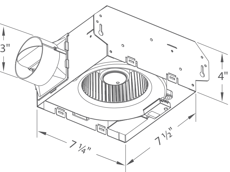 Weighing in at less than 5 lbs., the powerful yet compact Delta BreezSlim SLM70H sets the bar for performance in the popular small fan size of 7.5" x 7.25" x 3.94". Operating at 2.0 Sones, this quiet fan features Delta’s super reliable DC brushless motor, an LED indicator light so you know it’s running. Perfect for retrofit into an existing space for ceiling mount or wall mount installation (UL listed for both) into your next multifamily or single-family project. BreezSlim breaks the mold of the everyday bathroom exhaust fan.