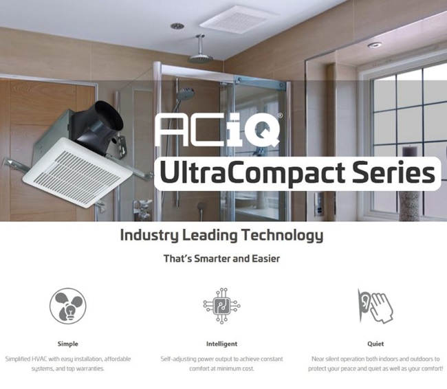 The ACiQ UltraCompact Series Bathroom Exhaust Fans are engineered for long-lasting durability and dependable performance. Each unit features a housing constructed from heavy-duty 26-gauge galvanized steel, providing excellent corrosion resistance in high-moisture bathroom environments. A high-efficiency capacitor-start motor powers the fan, permanently lubricated and equipped with an overload disconnect to ensure safe, continuous-duty operation. A detachable 4-inch polymeric collar with an integrated back-draft damper ensures proper airflow control and helps prevent reverse air leakage. The low-profile grille is crafted from durable polymeric resin for a clean, elegant appearance that blends seamlessly with any ceiling or wall design.