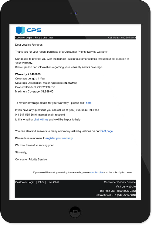 By purchasing a CPS extended plan, you’re guaranteed years of worry-free operation from your new product.