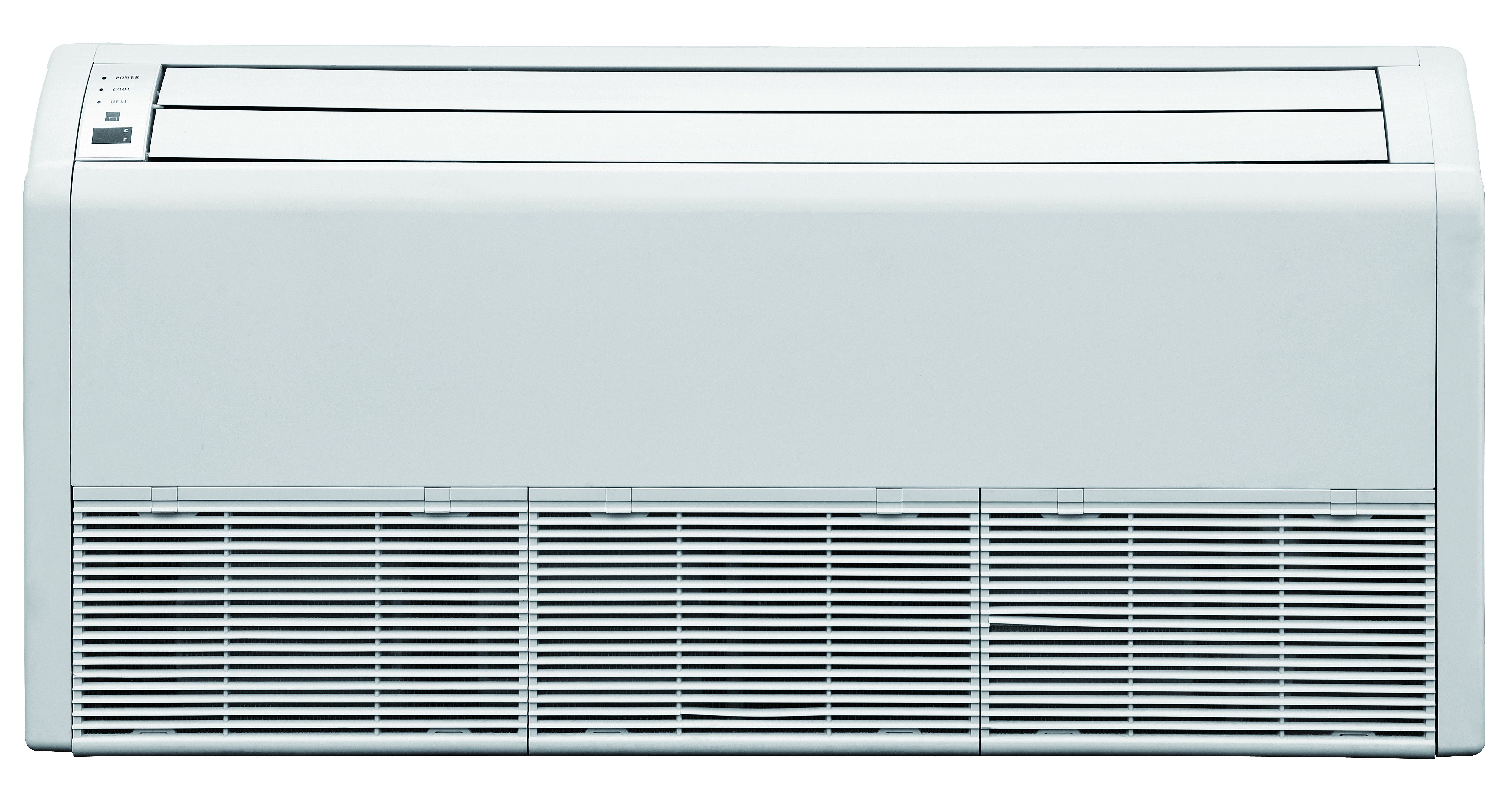 The Gree Universal Floor/Ceiling unit is designed to be suspended from a ceiling or mounted on a wall. The ceiling mounted orientation perfect for restaurants or hallways where space is limited. The floor mount is a great replacement for a hot water fan coil niche or low wall. It comes with the features and technology you expect from Gree, including multi-speed fan, a sleep mode, and a quiet operation.Â