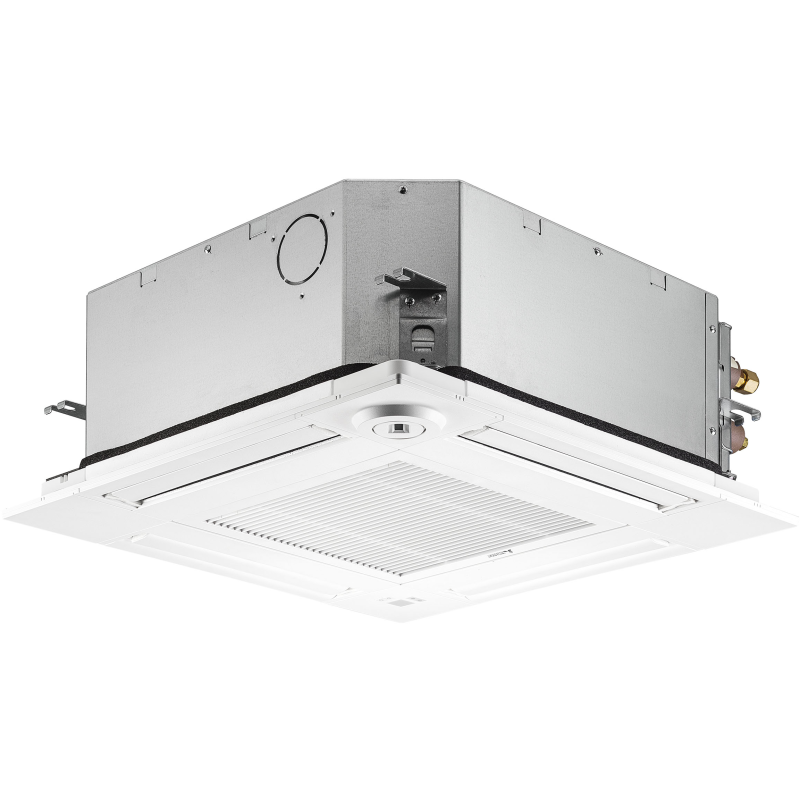 Manufactured as a ceiling-recessed air handler, the Mitsubishi SLZ-KF09NA is a space-saving air handler, specifically designed for small rooms or installations where wall-mounted units are impractical. With its integrated 4-direction airflow and fresh air intake knockouts, the SLZ-KF09NA can be used for both residential and light-commercial applications. Moreover, the air handler also has a built-in condensate lift mechanism to simplify the installation process, ensuring enhanced comfort built to last at a lower installation cost. Please note that the image shows an I-SEE sensor in the cassette grille, available at an additional cost. Without this upgrade, the grille will not include the enhanced functionality of more precisely redirecting the airflow of the unit.