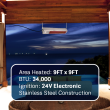 The Modine patio heater is designed for instant heat, meaning you won't need to wait for it to warm up before enjoying the outdoors. It can heat an area that is up to 9' x 9', making it ideal for patios, garages, and other outdoor areas. This Modine heater also has external controls, allowing for easy access to the gas valve and control system for a simple installation.