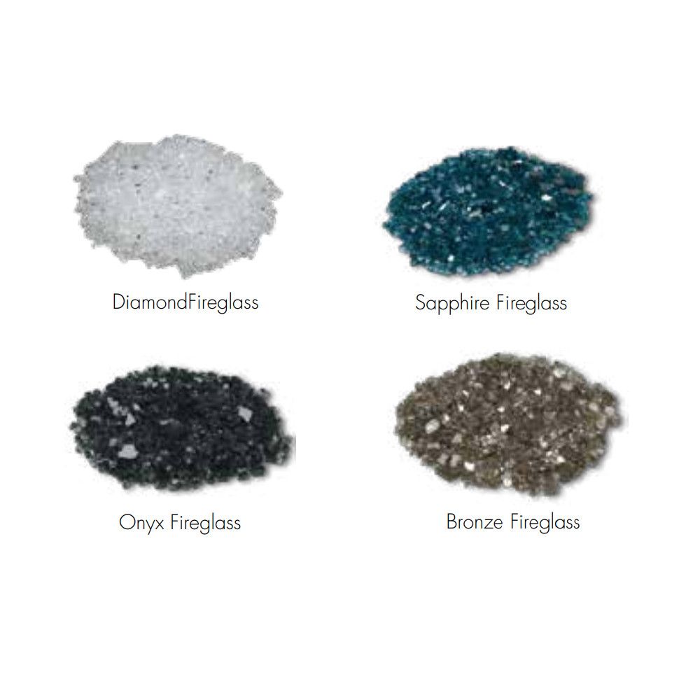 Includes: Diamond Fireglass Media, Reflective Black Glass, Remote, Non-Com and Multicolored LEDs