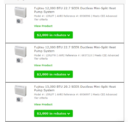 Energy-efficient heat pumps give you the biggest rebates, up to $2,000, with other rebates up to $1,200 for the insulation. Other products like energy-efficient air conditioners, furnaces, and water heaters are eligible, but their rebates are only up to $600, $800, and $400 depending on your location.