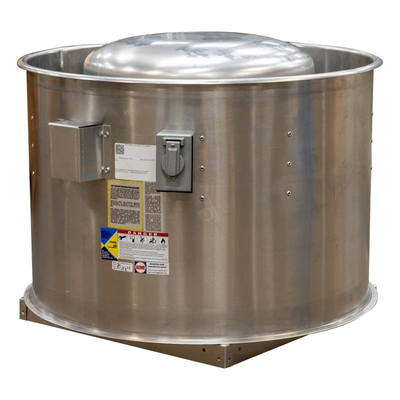 This restaurant exhauster is a belt drive upblast centrifugal fan that can be used on roofs or set horizontally to be used on walls. This has a max CFM of 1,020 and ideally suited for removal of grease laden exhaust found in restaurant and commercial kitchen applications. Other applications include a wide range of commercial, industrial, and institutional facilities such as schools, hospitals, prisons, and assembly areas.
