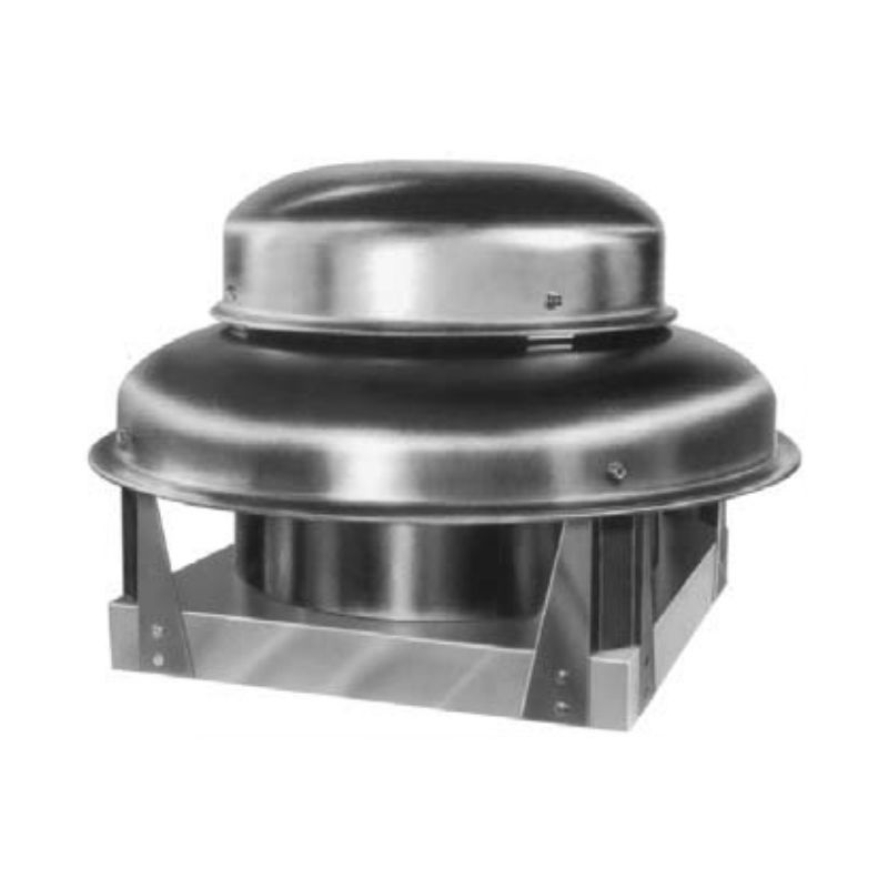 Model PRN direct drive fans are centrifugal power roof ventilators designed for exhausting clean air. This model has a maximum CFM of 580 and is ideally suited for the removal of grease-laden exhaust found in restaurant and commercial kitchen applications. The PRN is a downblast exhauster suitable for all types of commercial and institutional buildings, such as schools, hospitals, office buildings, and retail stores.